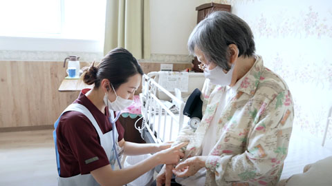 当社では、ご入居者さまの障害や病気、加齢などにともなう身体機能の低下に対して、今ある機能を最大限に活かして生活するということを大切に思っています。そのためには、理学療法士や作業療法士が身体機能の状況を把握し、少しでも機能が良くなるためのお手伝いをします。具体的には、機能訓練プログラムを作ったり、普段のお世話の仕方を工夫したりして、少しでも生活機能を上げる(元気になる)ための関わりをしていきます。